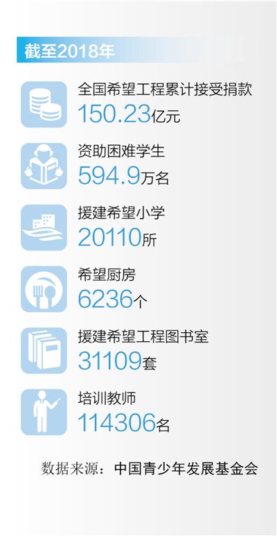1990年5月19日,全国第一所“希望小学”在安徽省金寨县落成。5月22日,人民日报《“希望工程”第一站 “希望小学”在金寨建成》的报道中这样写道:“‘金寨县希望小学’是团中央、中国青少年发展基金会倡导的‘希望工程’的第一个实施点。‘希望工程’将长期帮助贫困地区失学少年重返校园。”自此,希望小学如雨后春笋般出现在中国大地上,为教育落后地区和当地贫困学子打开了通向希望的大门。